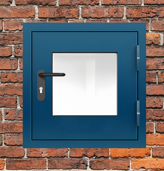 Специализированное решение люк металлический синий с окном для комплексного обеспечения требований пожарной безопасности.