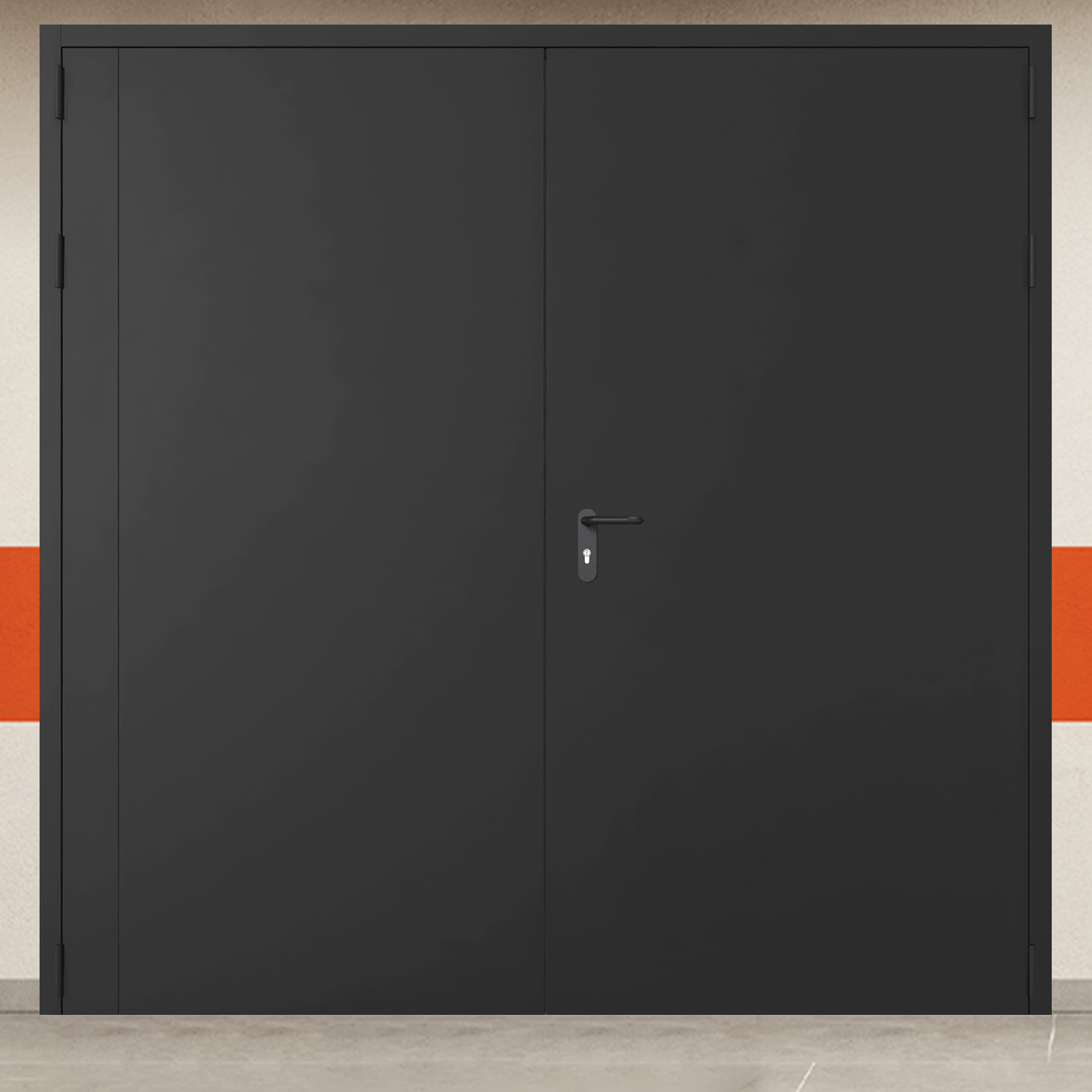 Профессиональное решение для обеспечения пожарной безопасности - ворота металлические двустворчатые черные без доводчика с сертифицированными характеристиками надежности.