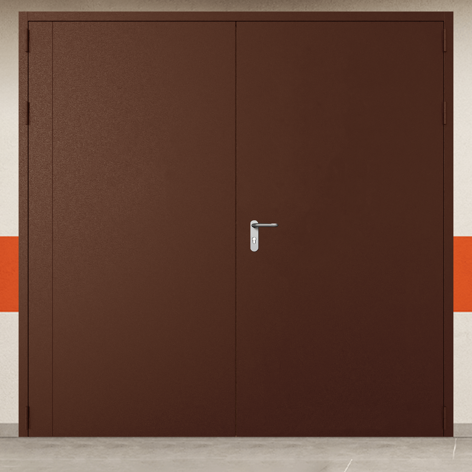 Профессиональное решение для обеспечения пожарной безопасности - ворота металлические двустворчатые коричневая с блестящей ручкой без доводчика с сертифицированными характеристиками надежности.